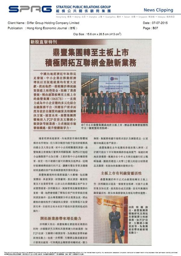 香港信报:鼎丰集团转至主板上市 积极开拓互联网金融新业务